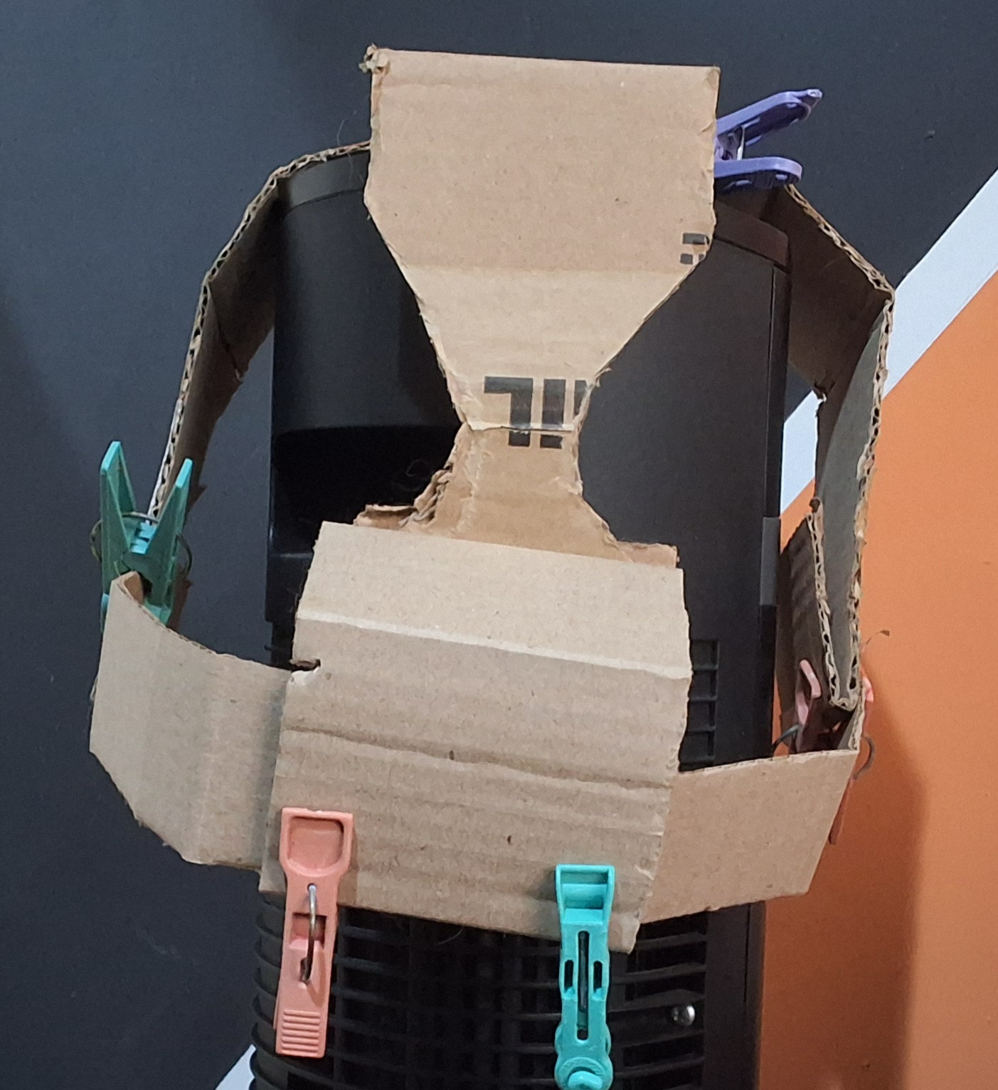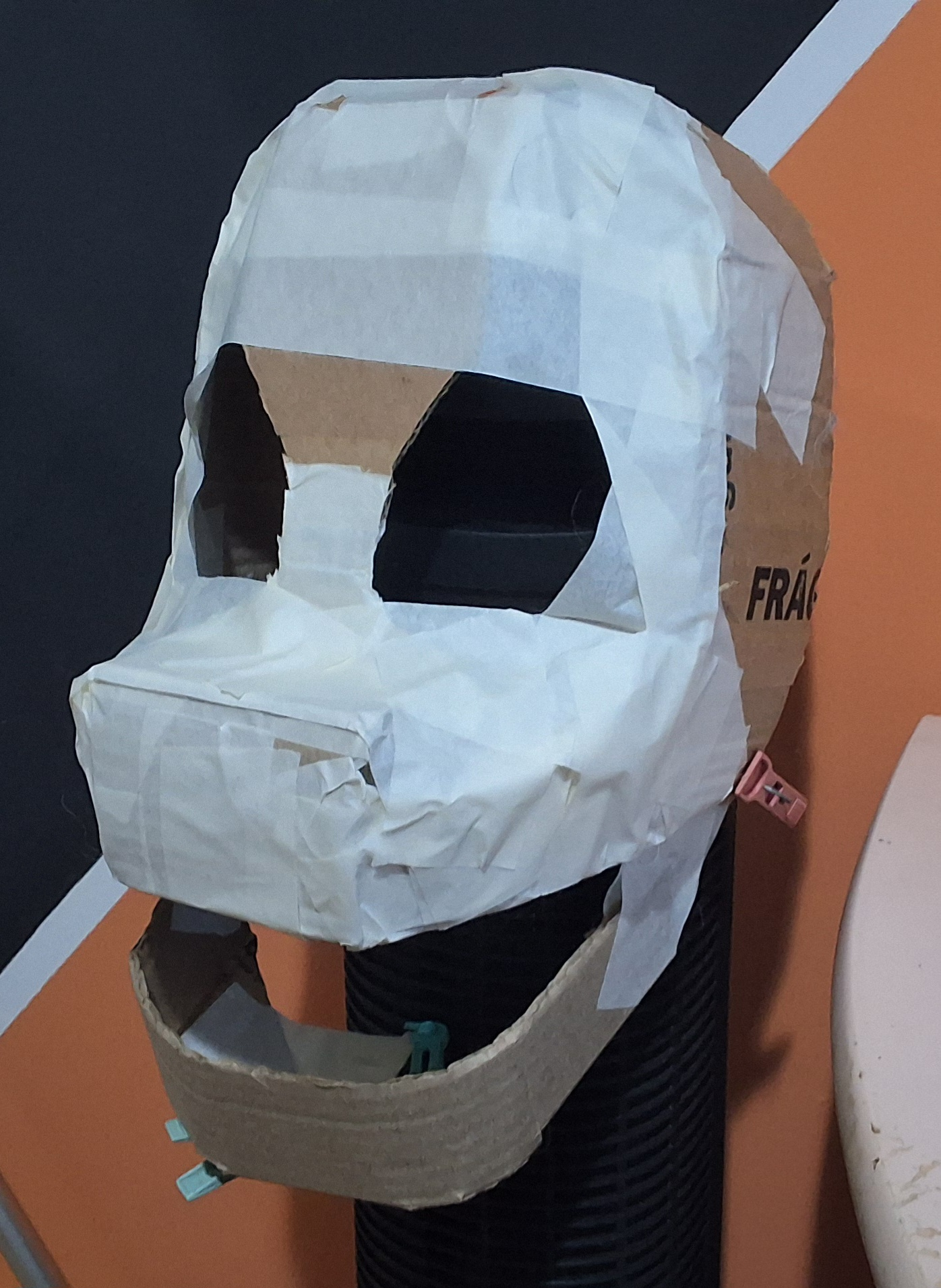 [Day 22] First, I had to get the head shape right. Clothespins were used to be able to freely adjust the cardboard strips before being taped over. (this somehow took a day to get right. lots of triple-checking)